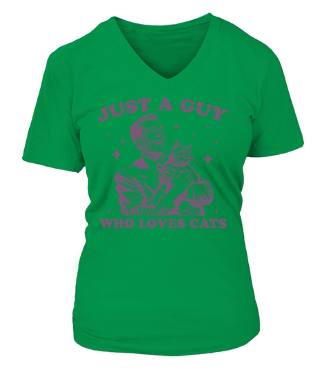Shop Just A Guy Who Loves Cats L Purple V-neck T-Shirt Woman custom made just for you. Available on many styles, sizes, and colors.