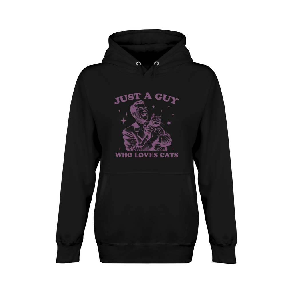 Shop Just A Guy Who Loves Cats L Purple Unisex Premium Pullover Hoodie custom made just for you. Available on many styles, sizes, and colors.