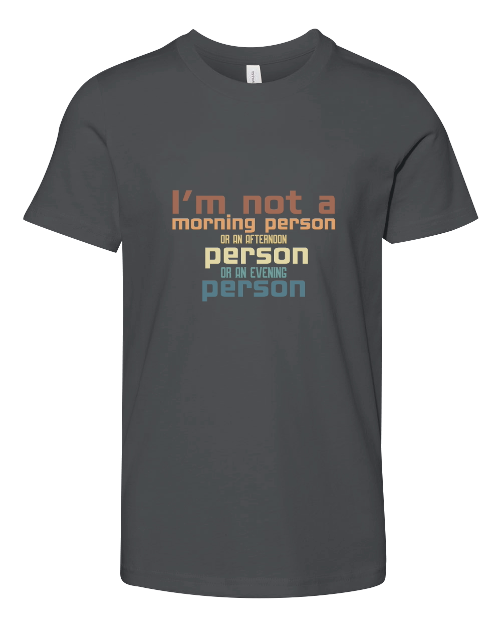 Shop Im not a morning person or an afternoon person or an evening person Youth Unisex Jersey Tee custom made just for you. Available on many styles, sizes, and colors.