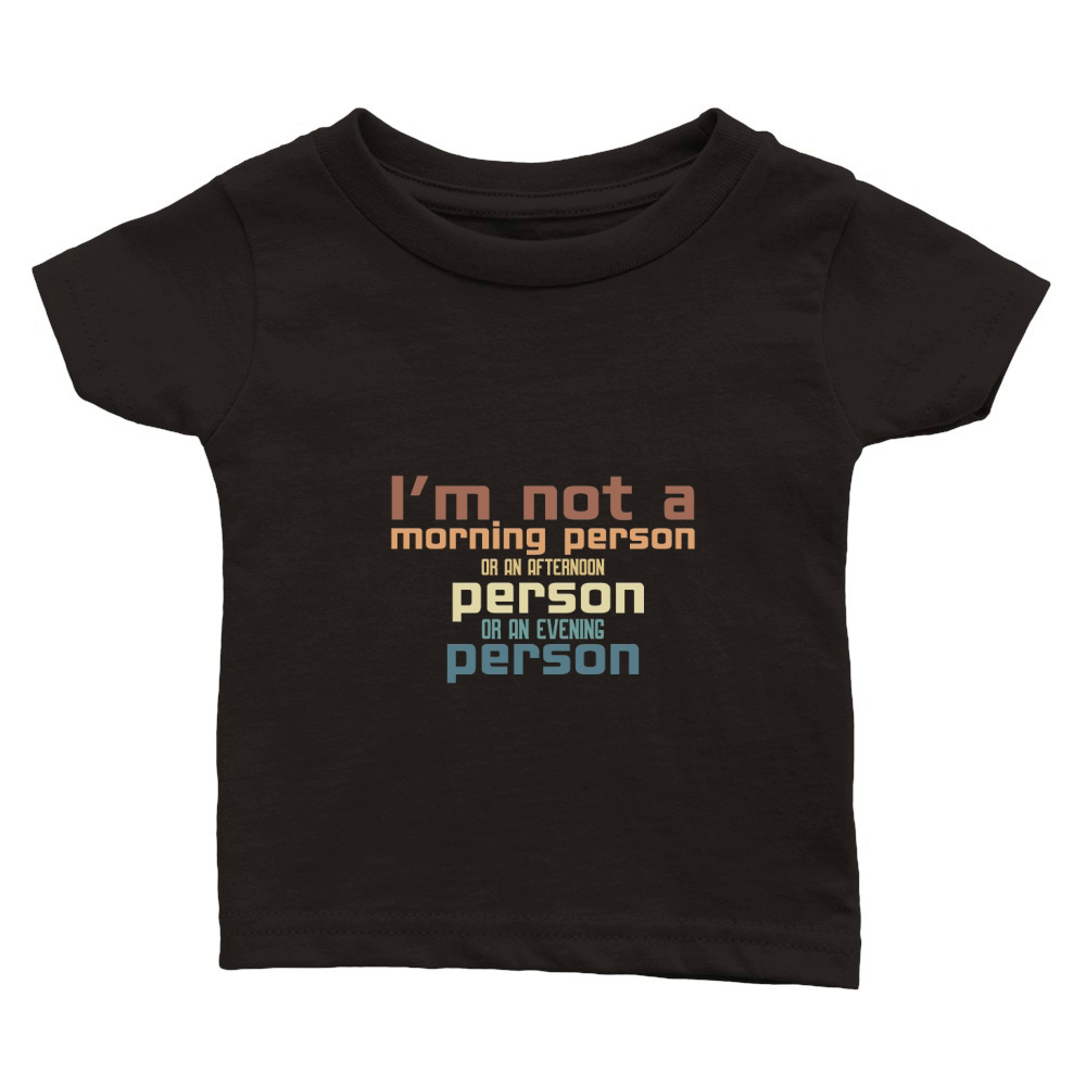 Shop Im not a morning person or an afternoon person or an evening person Classic Baby Crewneck T-shirt custom made just for you. Available on many styles, sizes, and colors.