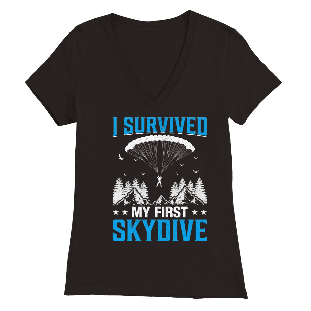 Shop I survived my first skydive 02 Premium Womens V-Neck T-shirt custom made just for you. Available on many styles, sizes, and colors.
