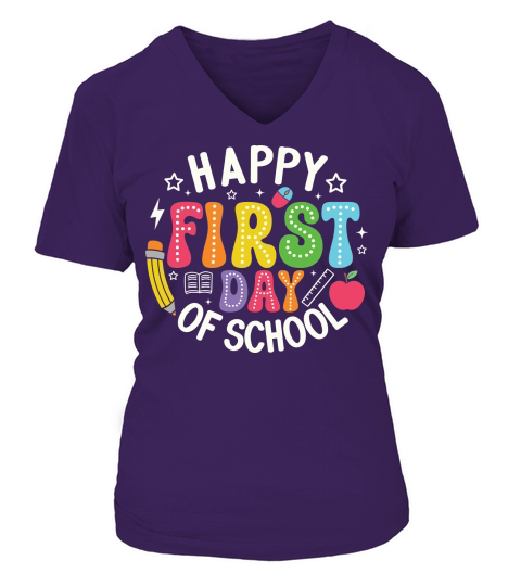 Shop HappyFirstDayOfSchool1 V-neck T-Shirt Woman custom made just for you. Available on many styles, sizes, and colors.