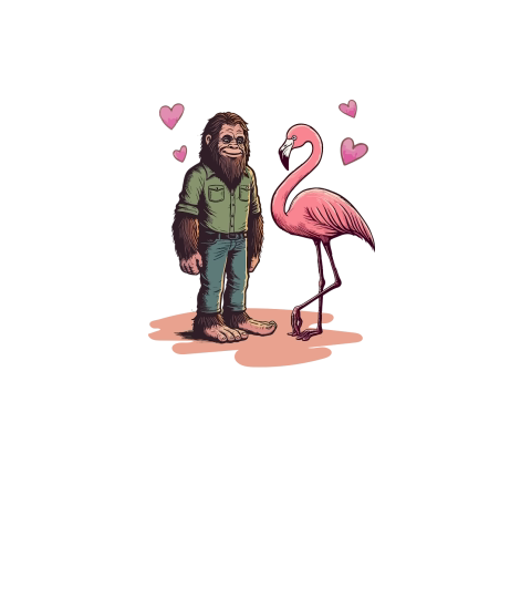 65.Bigfoot Sasquatch And Flamingo With Love