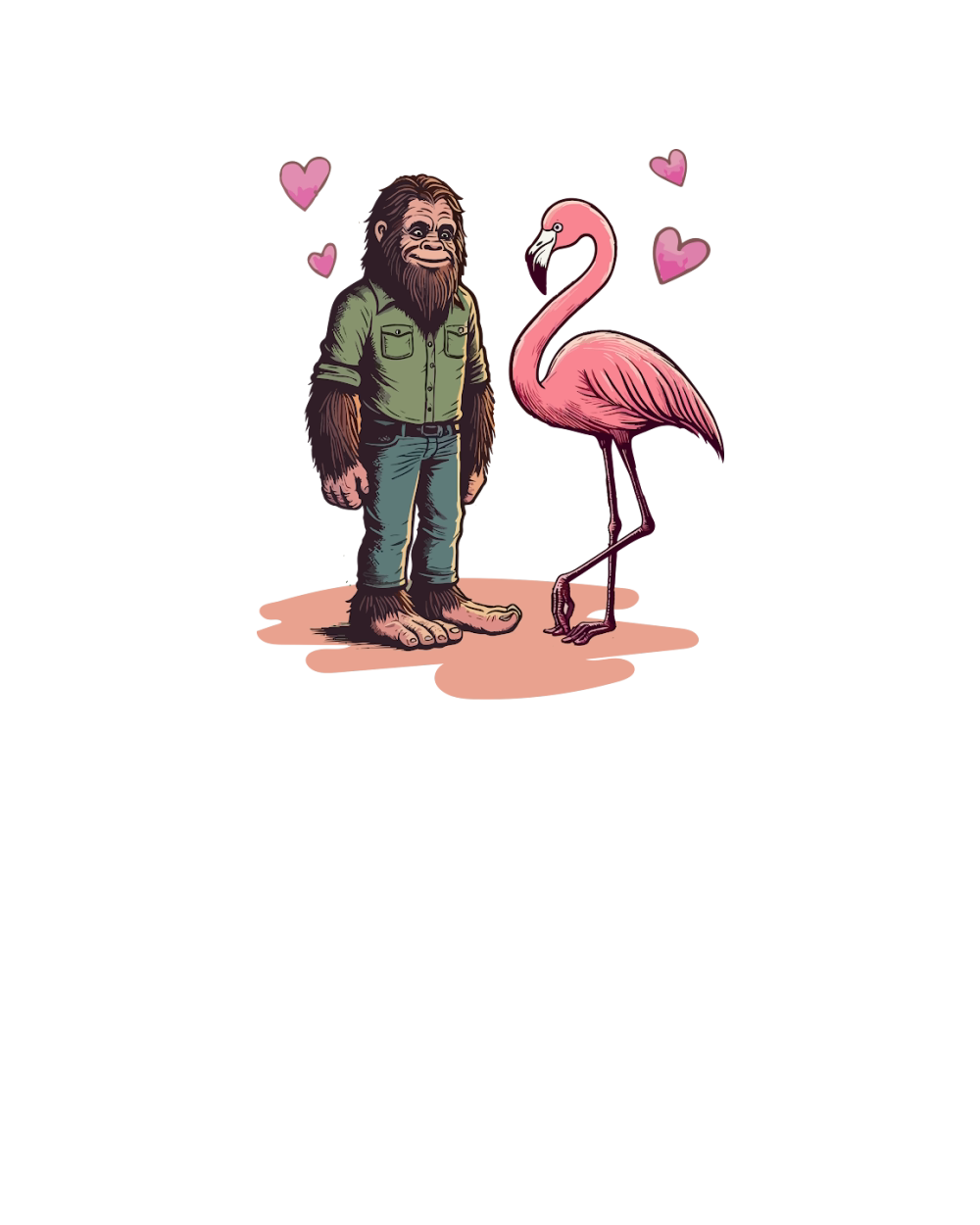 65.Bigfoot Sasquatch And Flamingo With Love