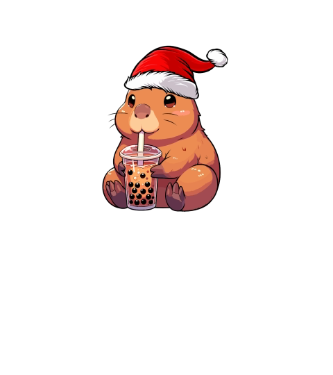 adorable acapybara drinking boba tea wearing santa hat 2