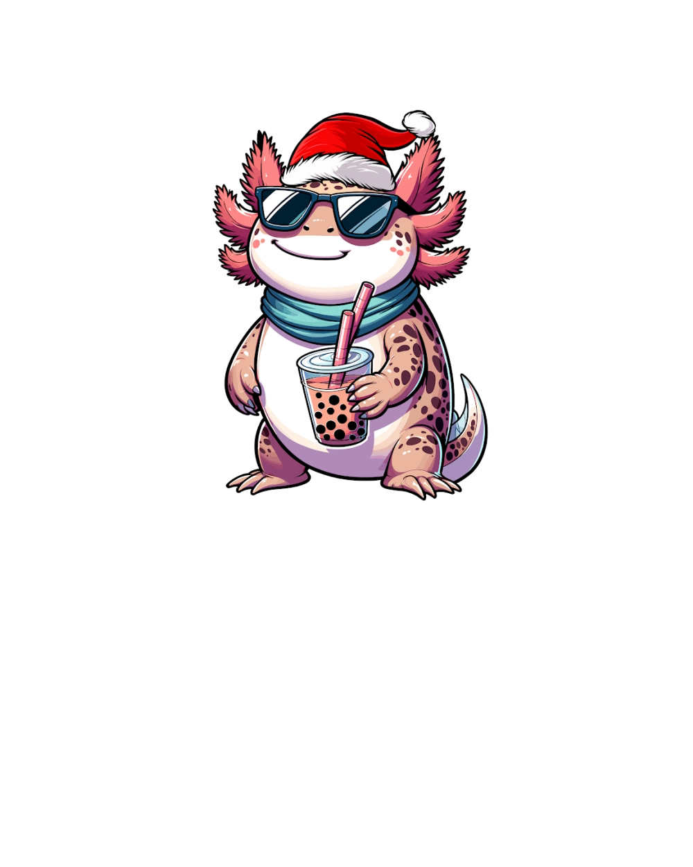 adorable axolotl drinking boba tea wearing santa hat 1