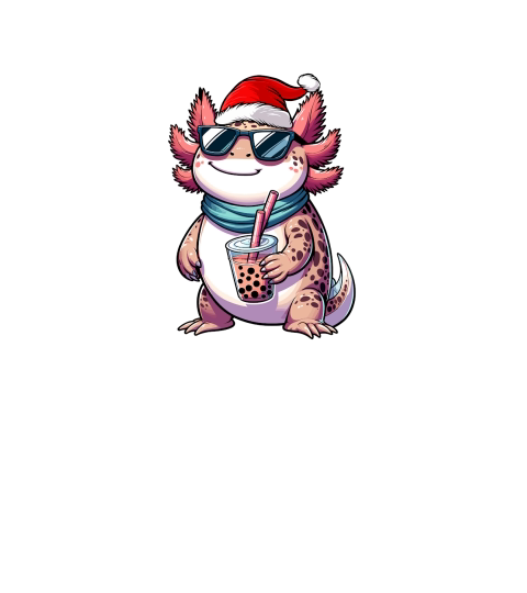 adorable axolotl drinking boba tea wearing santa hat 1