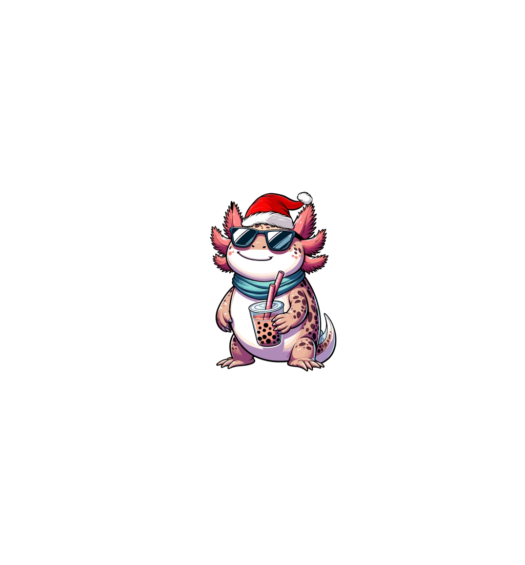 adorable axolotl drinking boba tea wearing santa hat 1