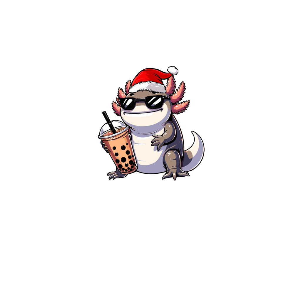 adorable axolotl drinking boba tea wearing santa hat 2