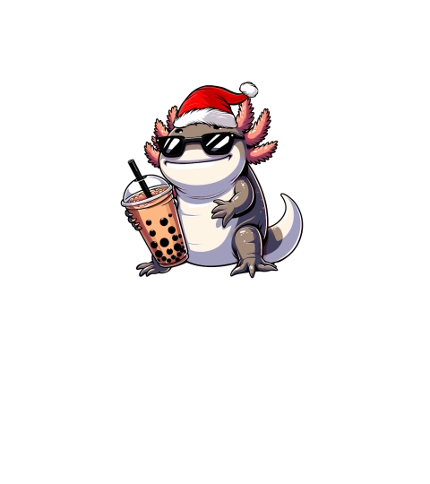 adorable axolotl drinking boba tea wearing santa hat 2