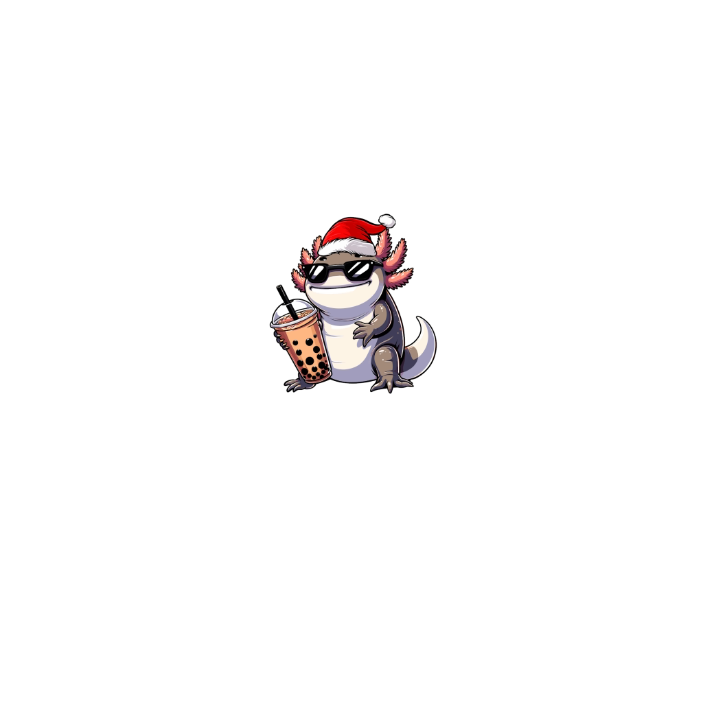 adorable axolotl drinking boba tea wearing santa hat 2