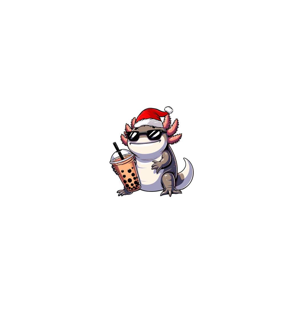 adorable axolotl drinking boba tea wearing santa hat 2