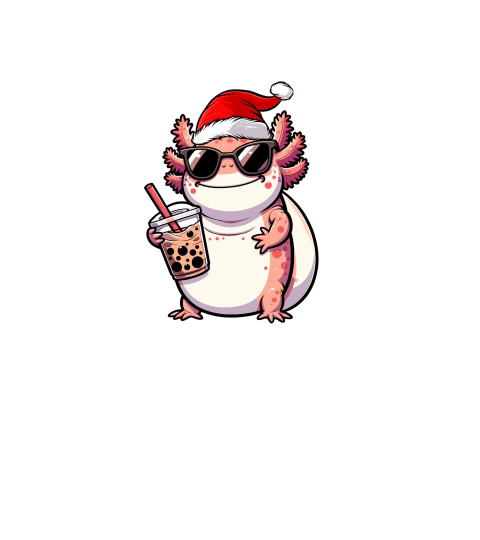 adorable axolotl drinking boba tea wearing santa hat 3