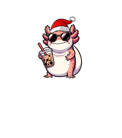 adorable axolotl drinking boba tea wearing santa hat 3