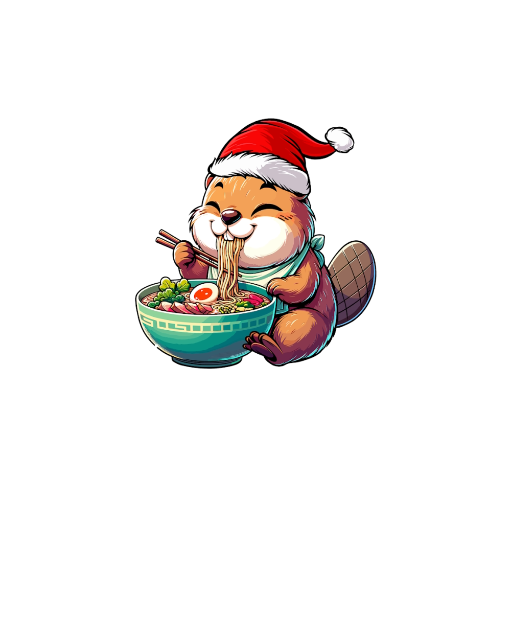 adorable beaver eating ramen wearing santa hat 1