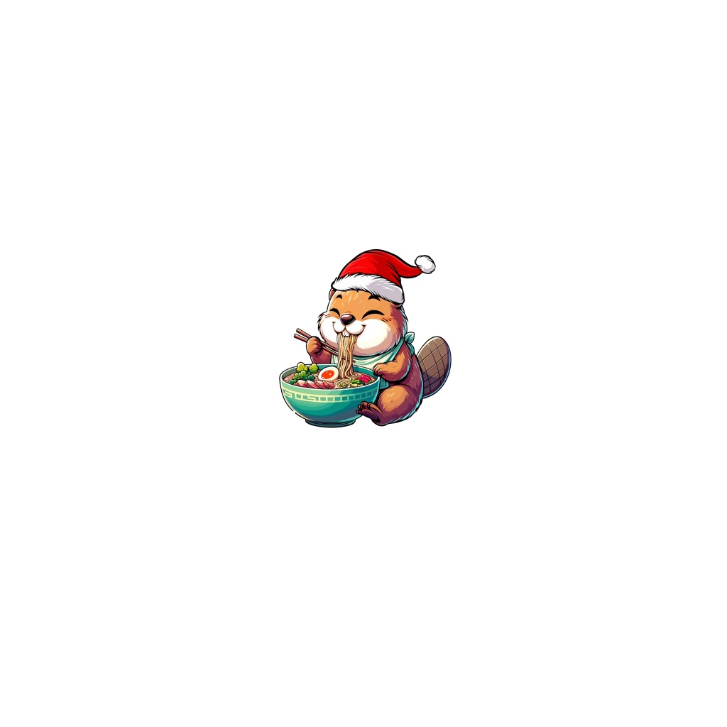 adorable beaver eating ramen wearing santa hat 1