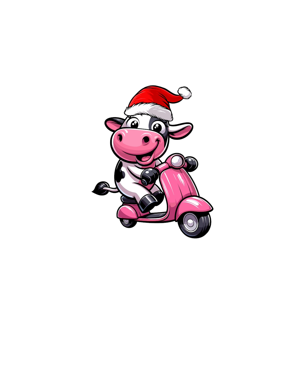 adorable Cow Riding Scooter wearing santa hat