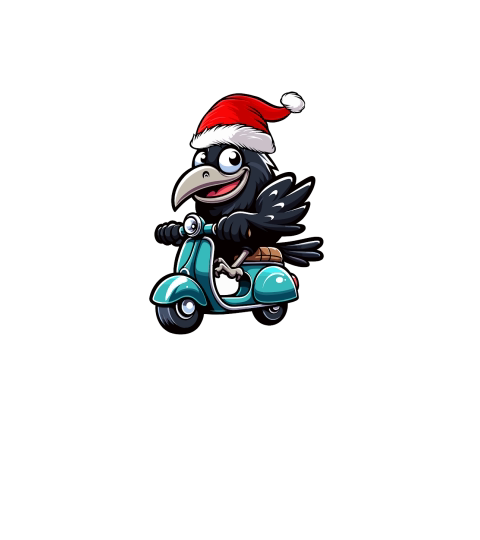adorable Crow Riding Scooter wearing santa hat 2