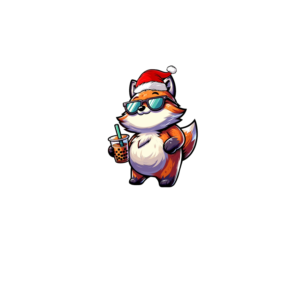 adorable fox drinking boba tea wearing santa hat 2