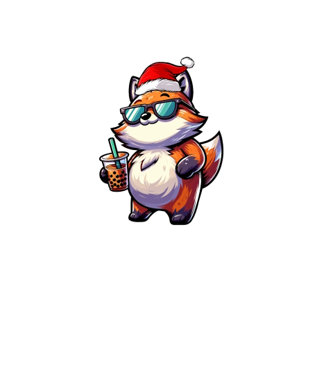 adorable fox drinking boba tea wearing santa hat 2