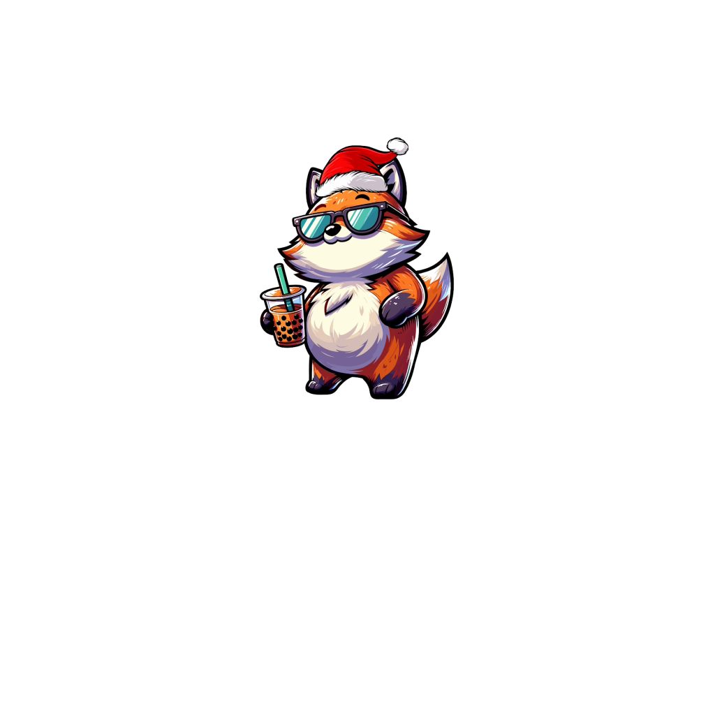 adorable fox drinking boba tea wearing santa hat 2