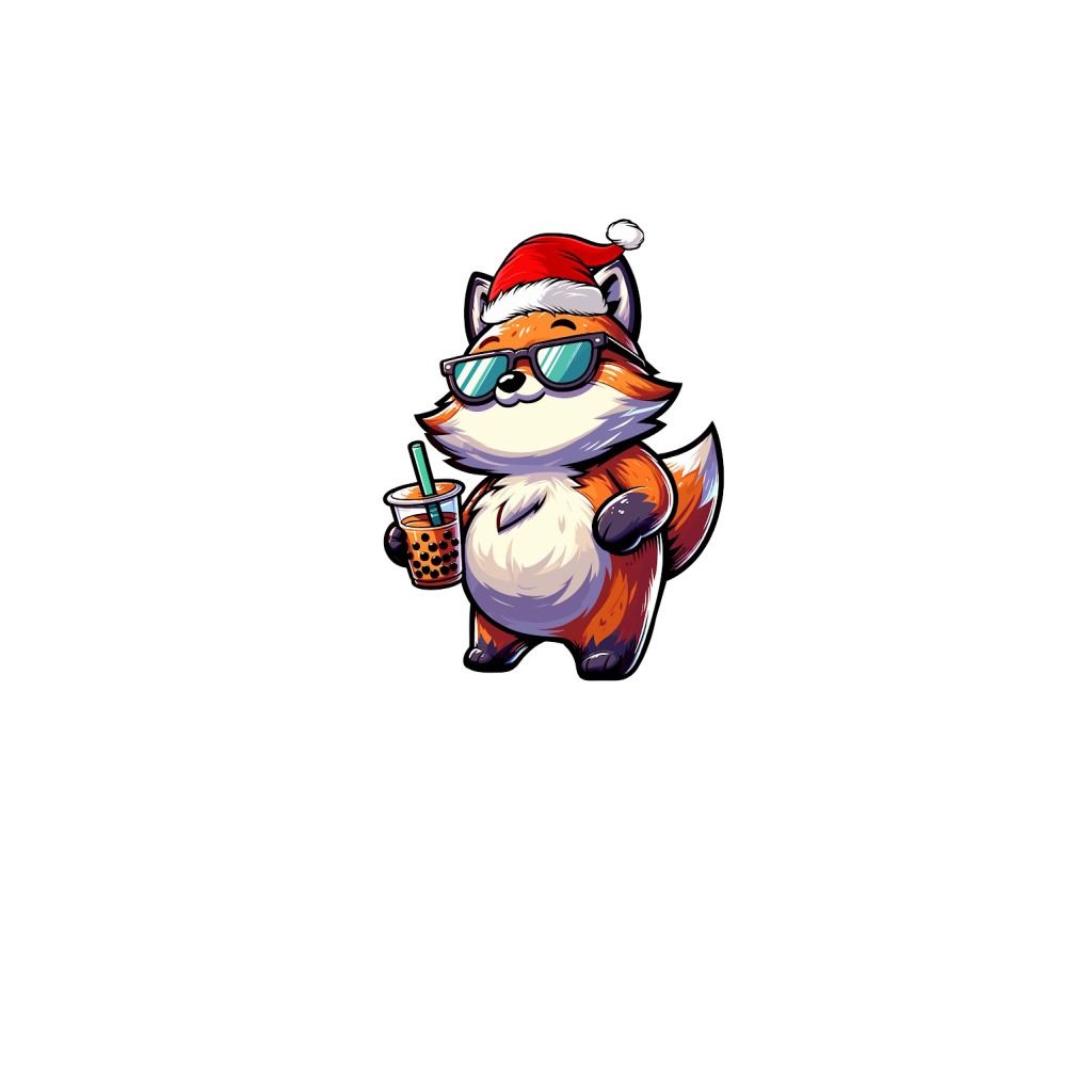 adorable fox drinking boba tea wearing santa hat 2