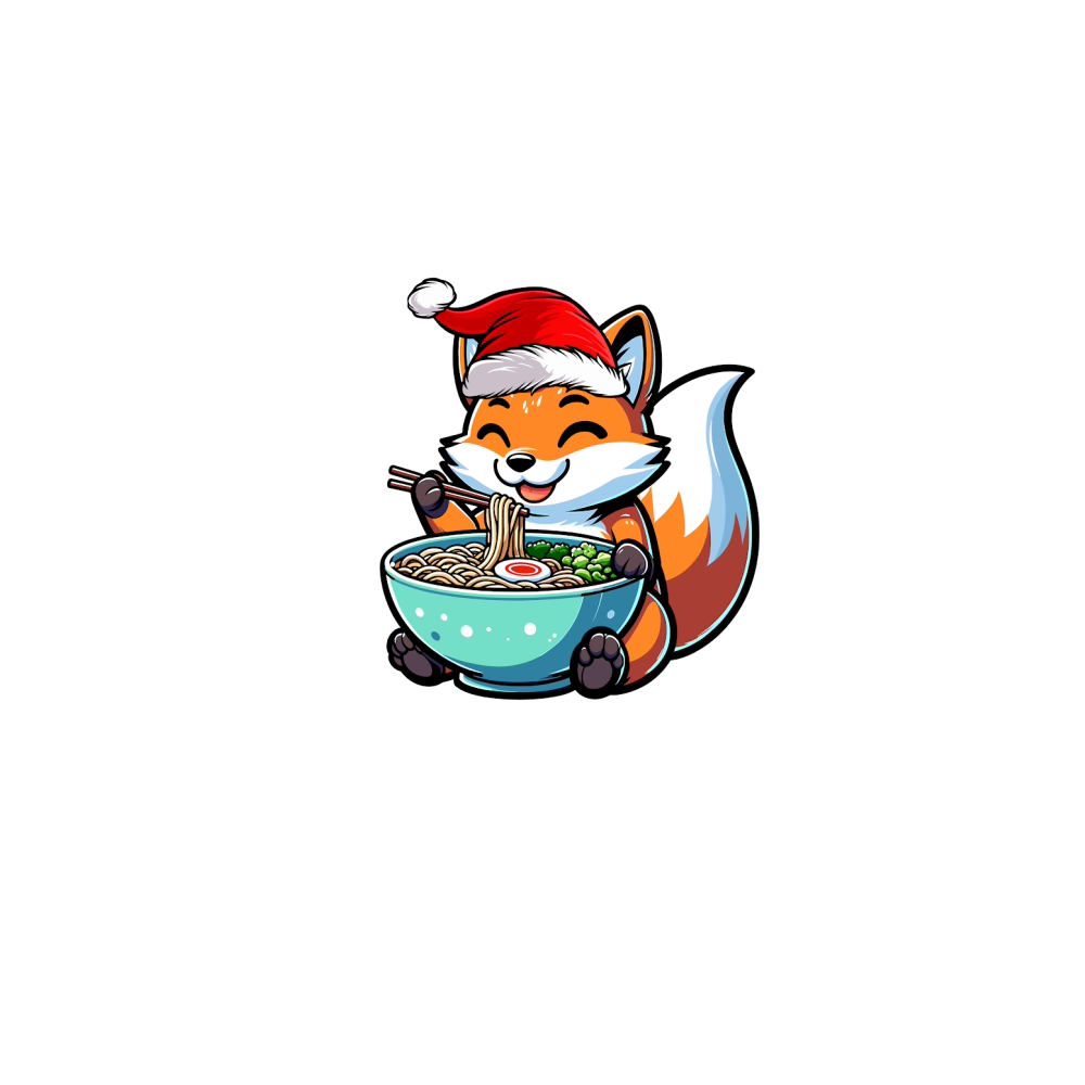 adorable fox eating ramen wearing santa hat 1