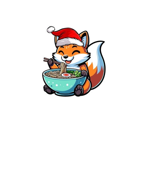 adorable fox eating ramen wearing santa hat 1