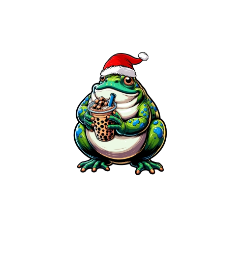 adorable frog drinking boba tea wearing santa hat 1