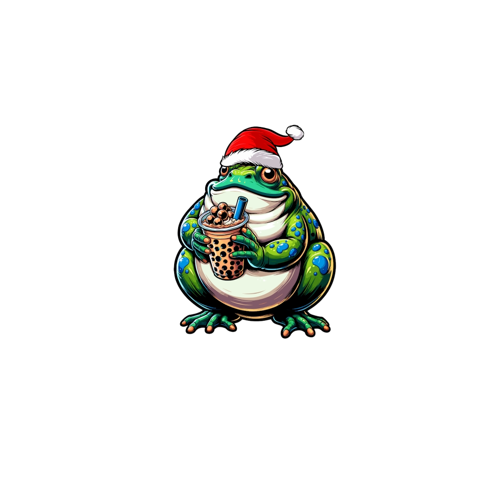 adorable frog drinking boba tea wearing santa hat 1