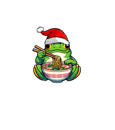adorable frog eating ramen wearing santa hat 1