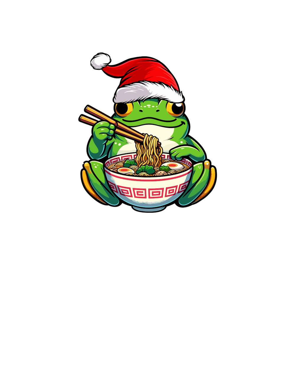 adorable frog eating ramen wearing santa hat 1