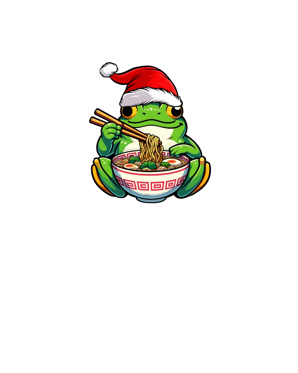 adorable frog eating ramen wearing santa hat 1