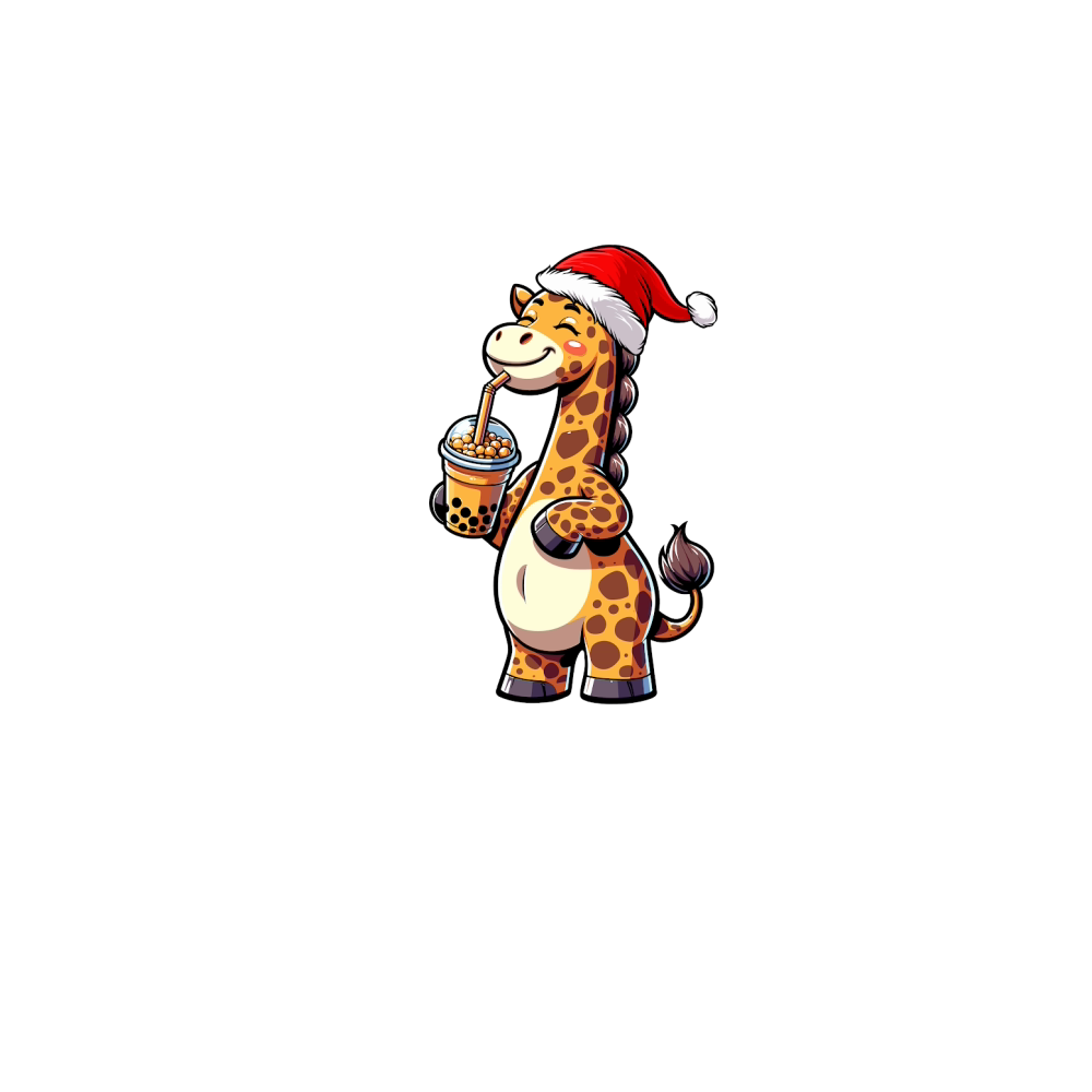 adorable giraffee drinking boba tea wearing santa hat 1