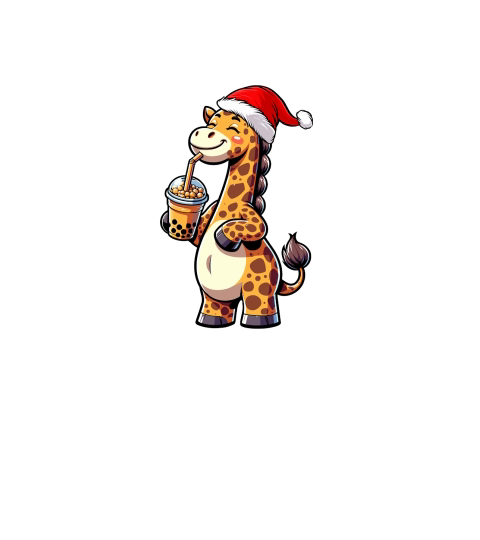 adorable giraffee drinking boba tea wearing santa hat 1