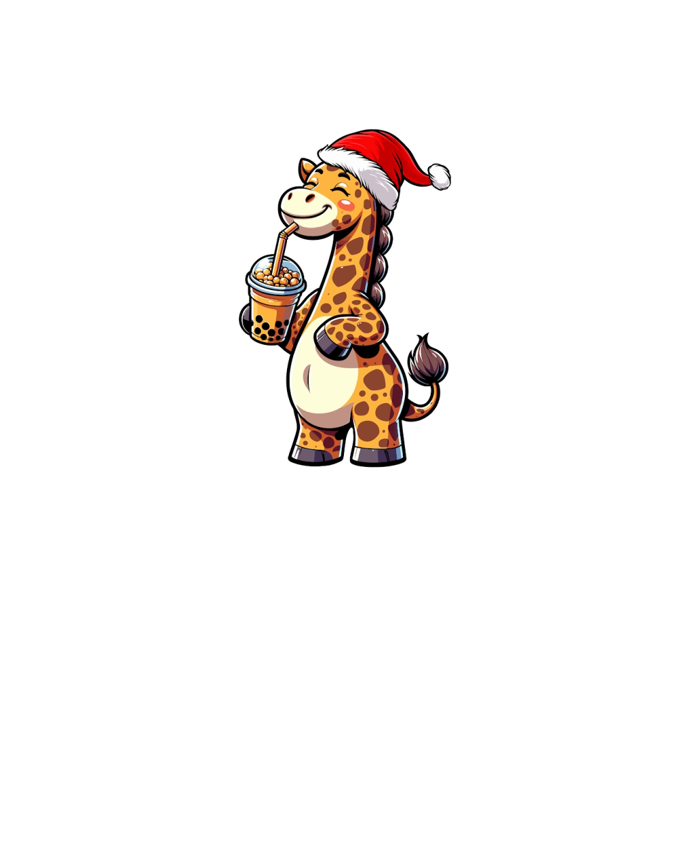 adorable giraffee drinking boba tea wearing santa hat 1