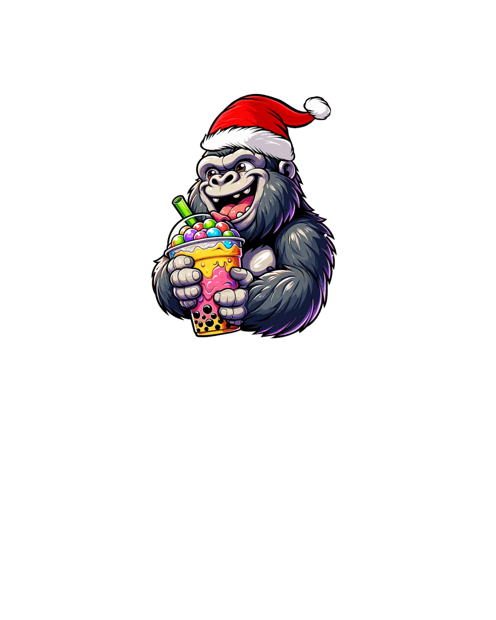 adorable gorilla drinking boba tea wearing santa hat 3