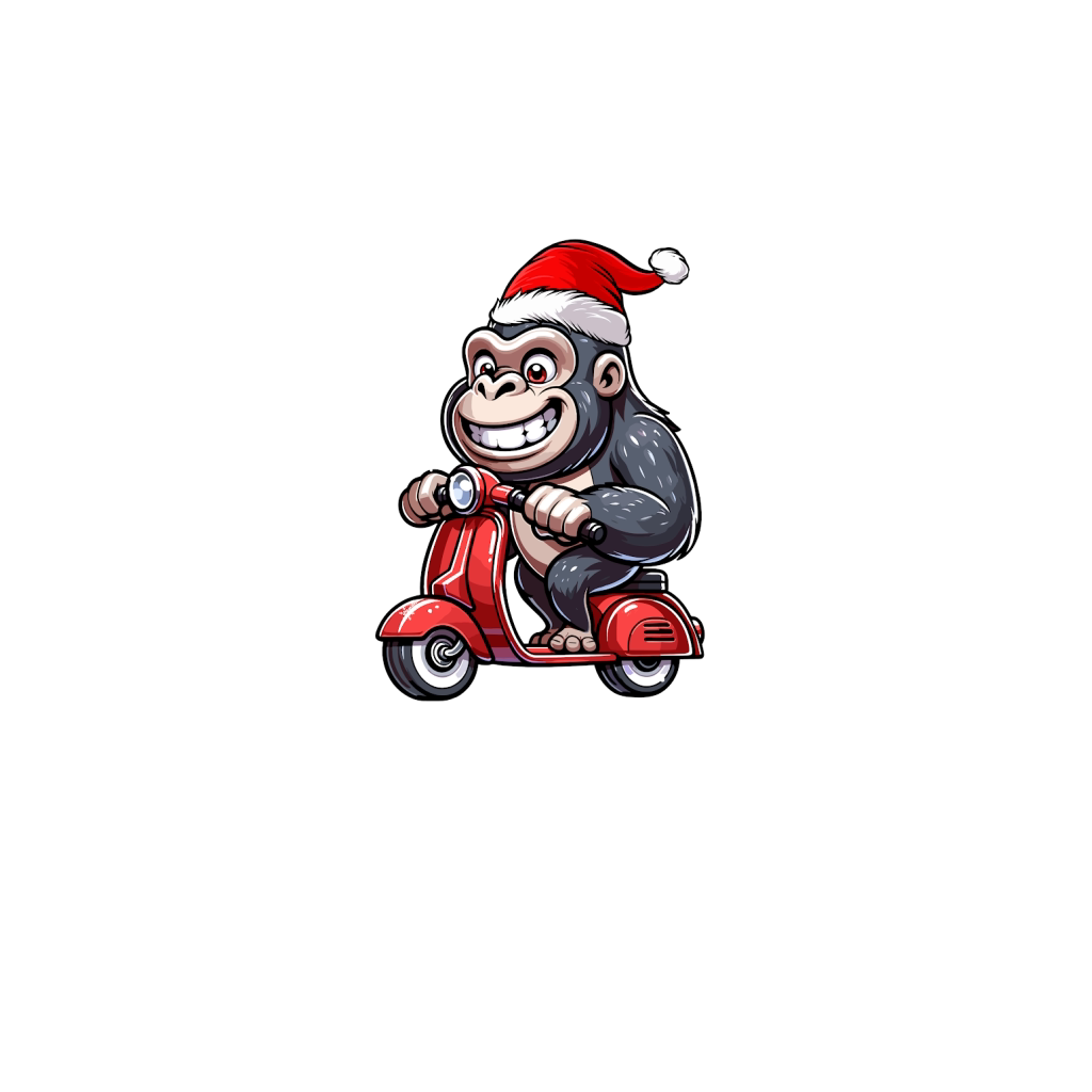 adorable gorilla Riding Scooter wearing santa hat 1