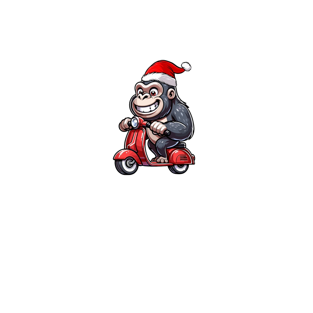 adorable gorilla Riding Scooter wearing santa hat 1