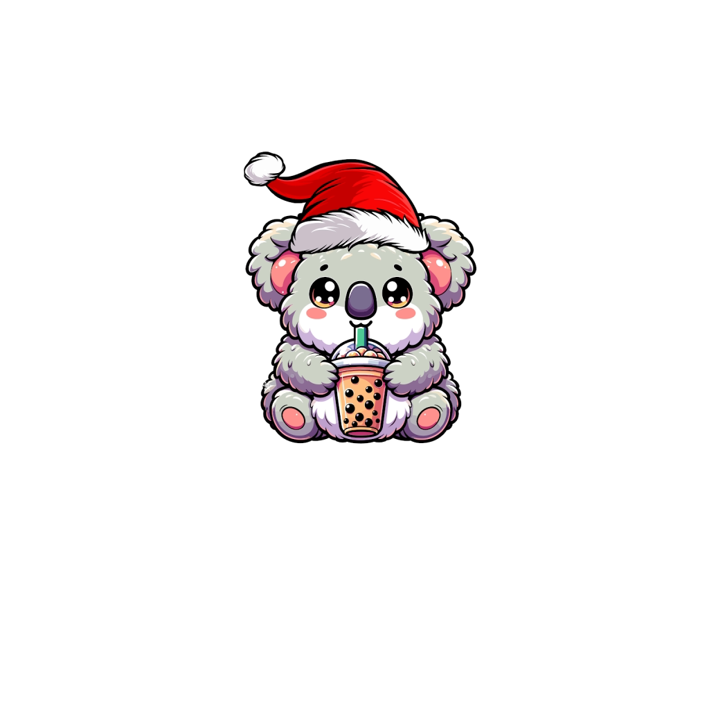 adorable koala drinking boba tea wearing santa hat 1