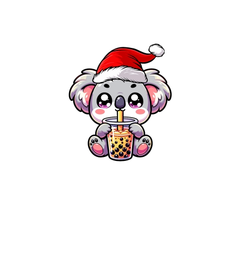 adorable koala drinking boba tea wearing santa hat 4