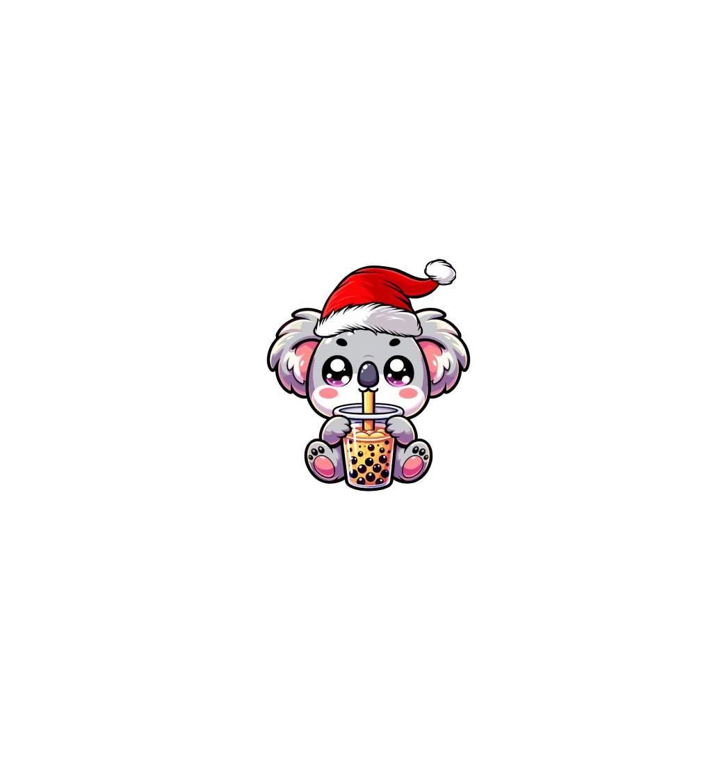 adorable koala drinking boba tea wearing santa hat 4