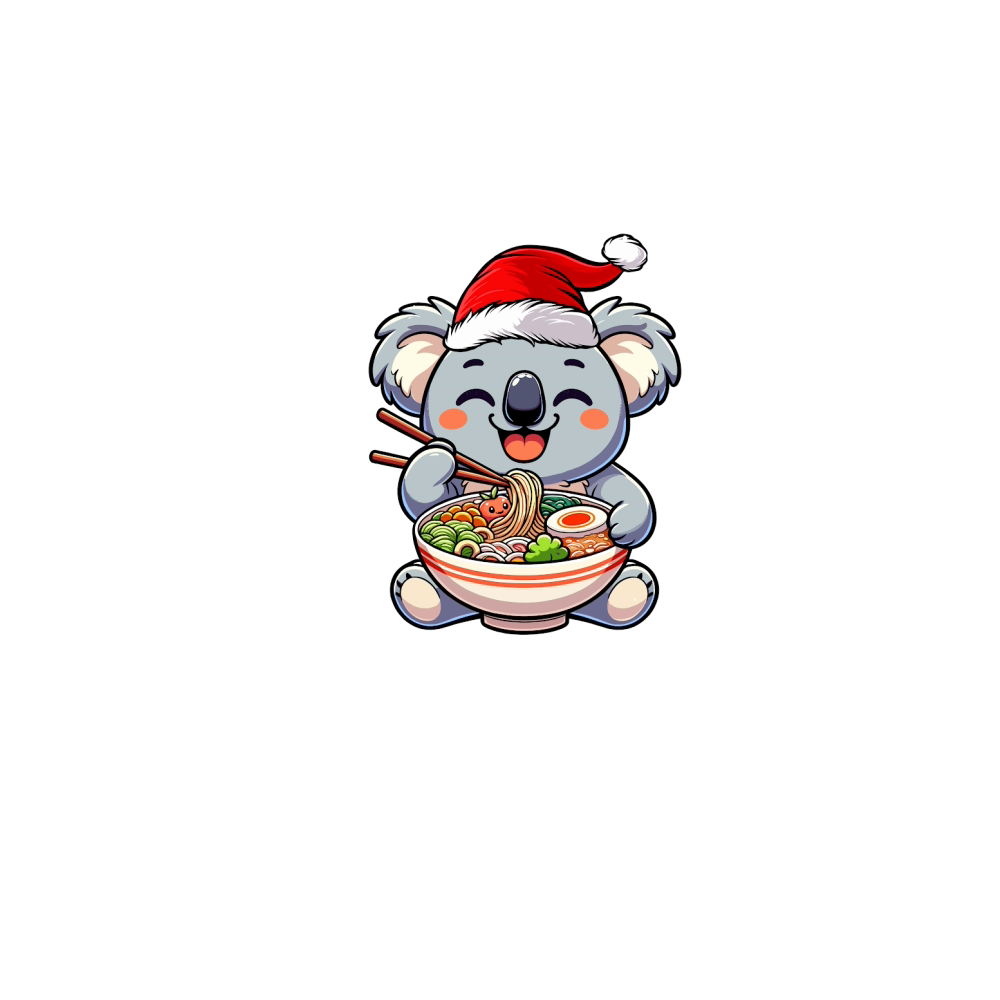 adorable koala eating ramen wearing santa hat 1