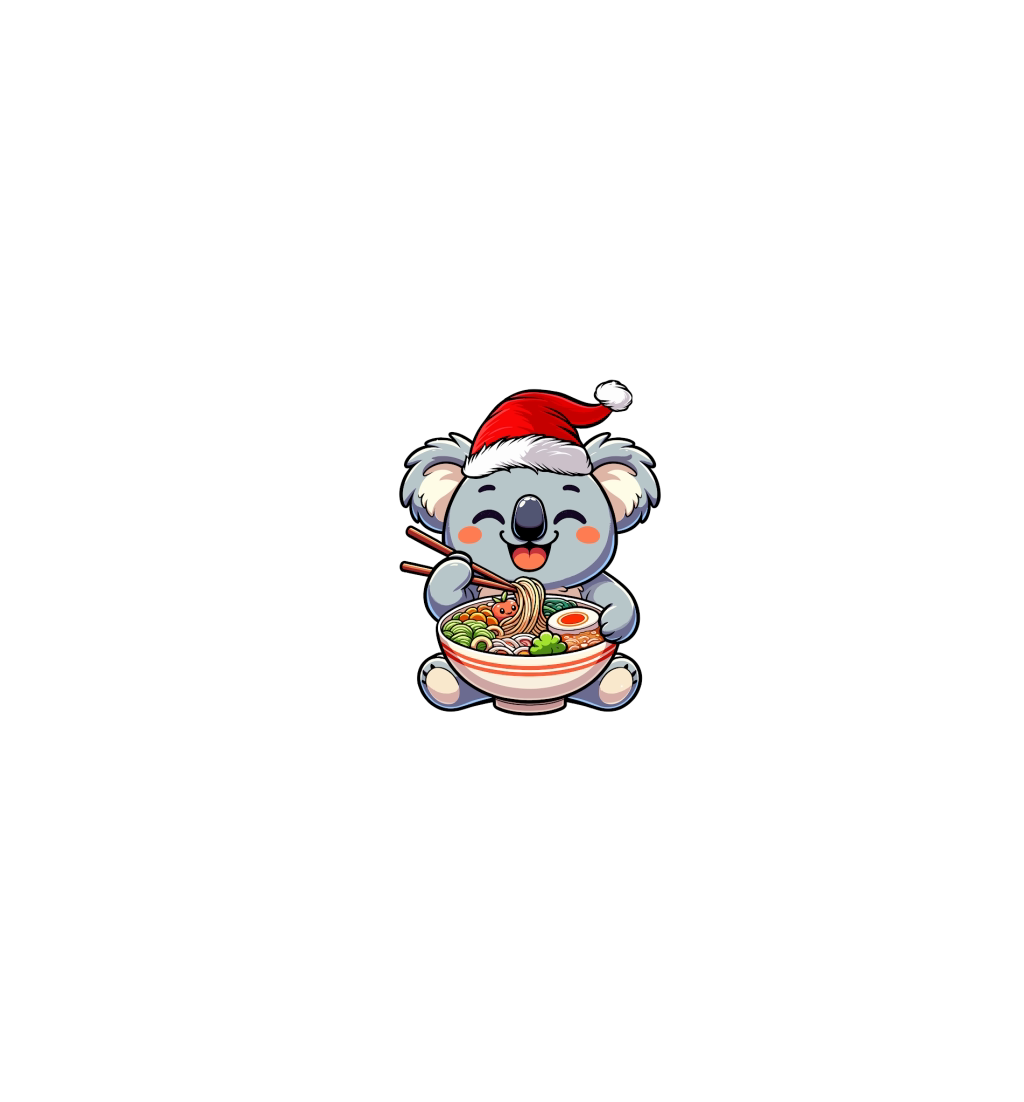 adorable koala eating ramen wearing santa hat 1