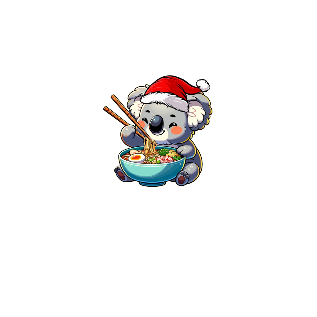 adorable koala eating ramen wearing santa hat 2