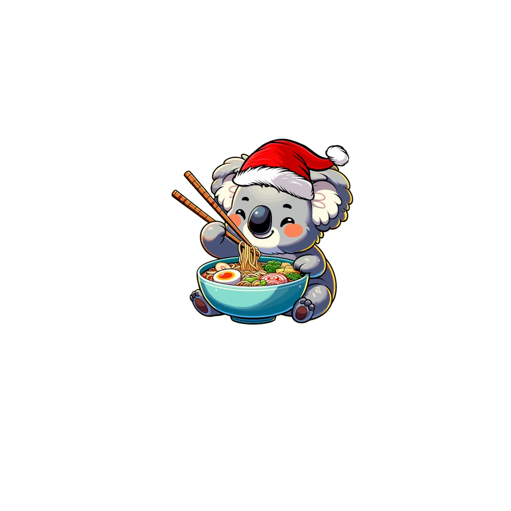 adorable koala eating ramen wearing santa hat 2