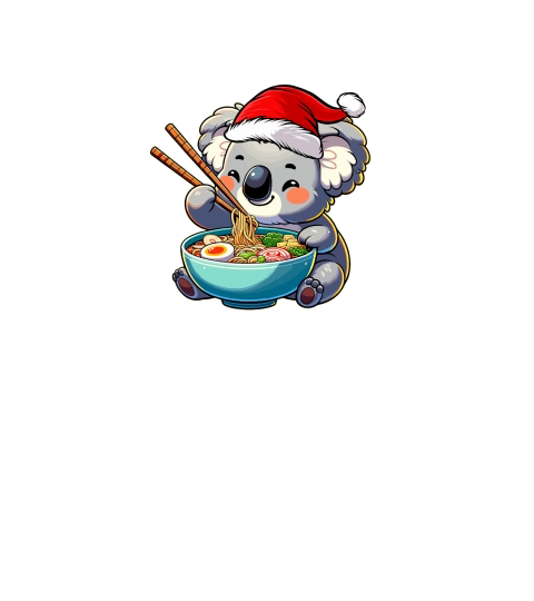 adorable koala eating ramen wearing santa hat 2
