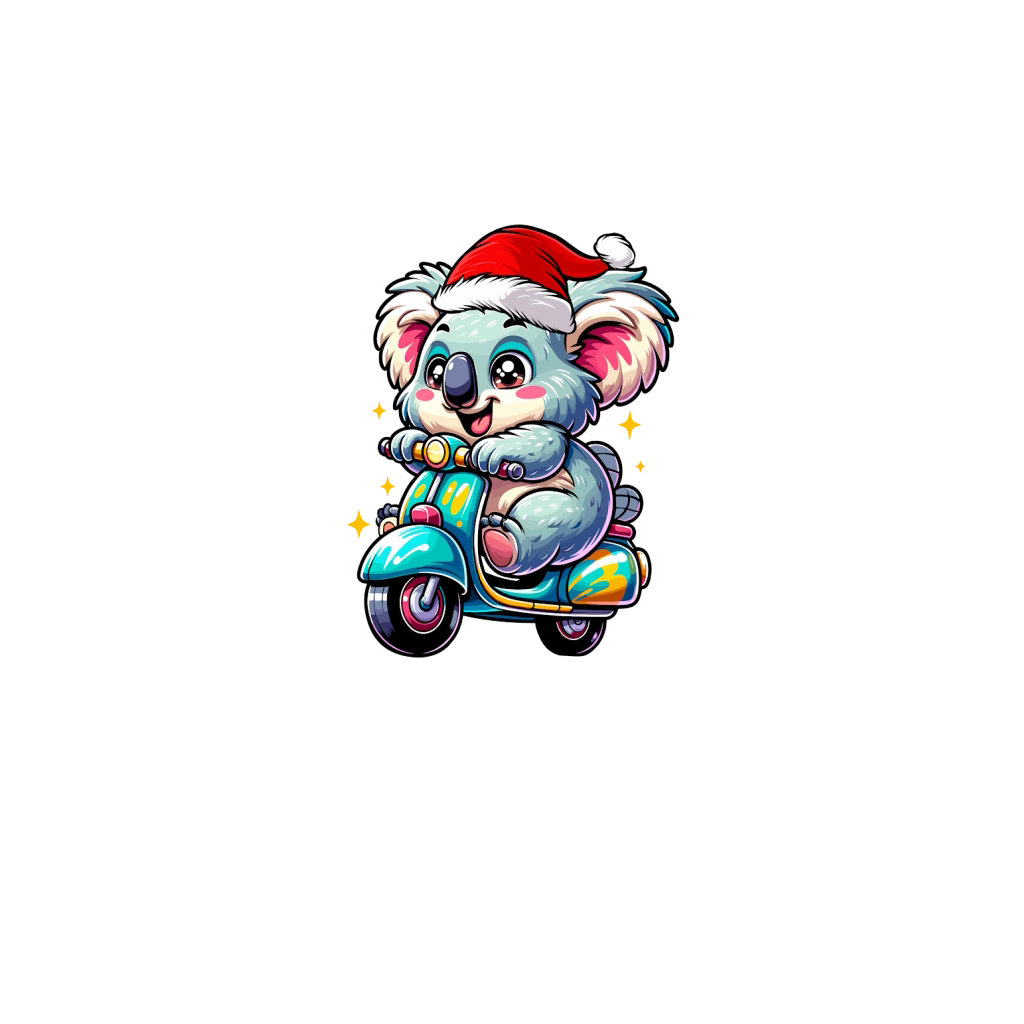 adorable Koala Riding Scooter wearing santa hat 1