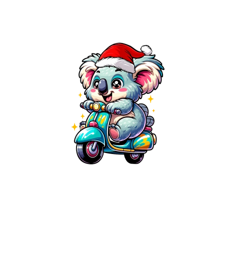 adorable Koala Riding Scooter wearing santa hat 1
