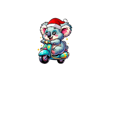 adorable Koala Riding Scooter wearing santa hat 1